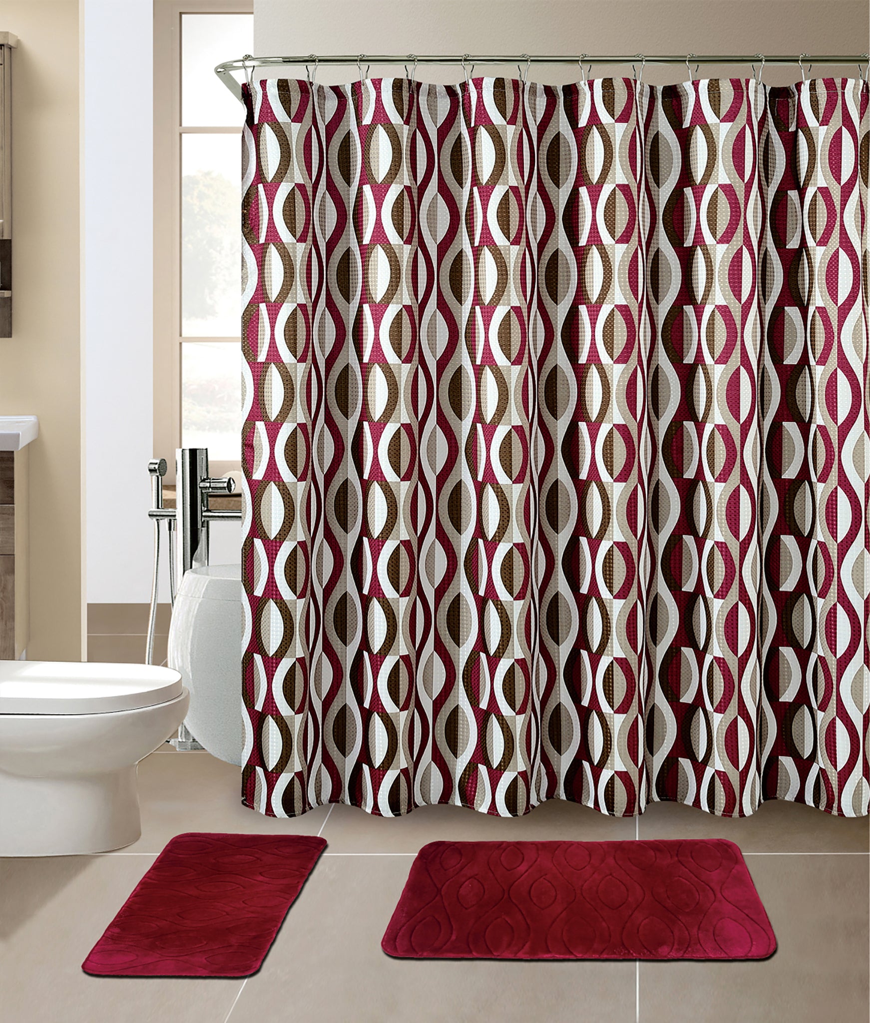 15-Piece Helix Design Bathroom Set With Matching Shower Curtain