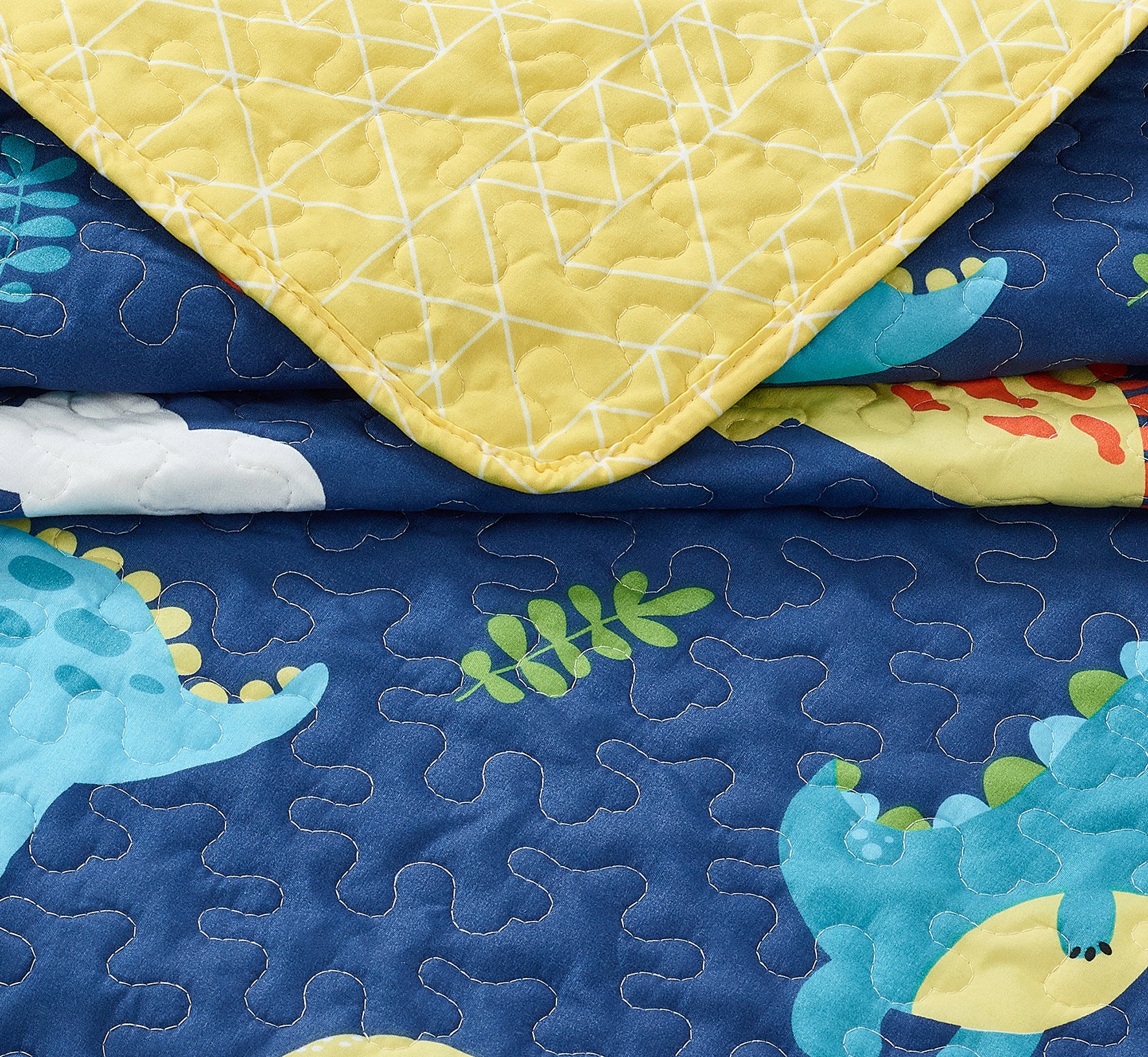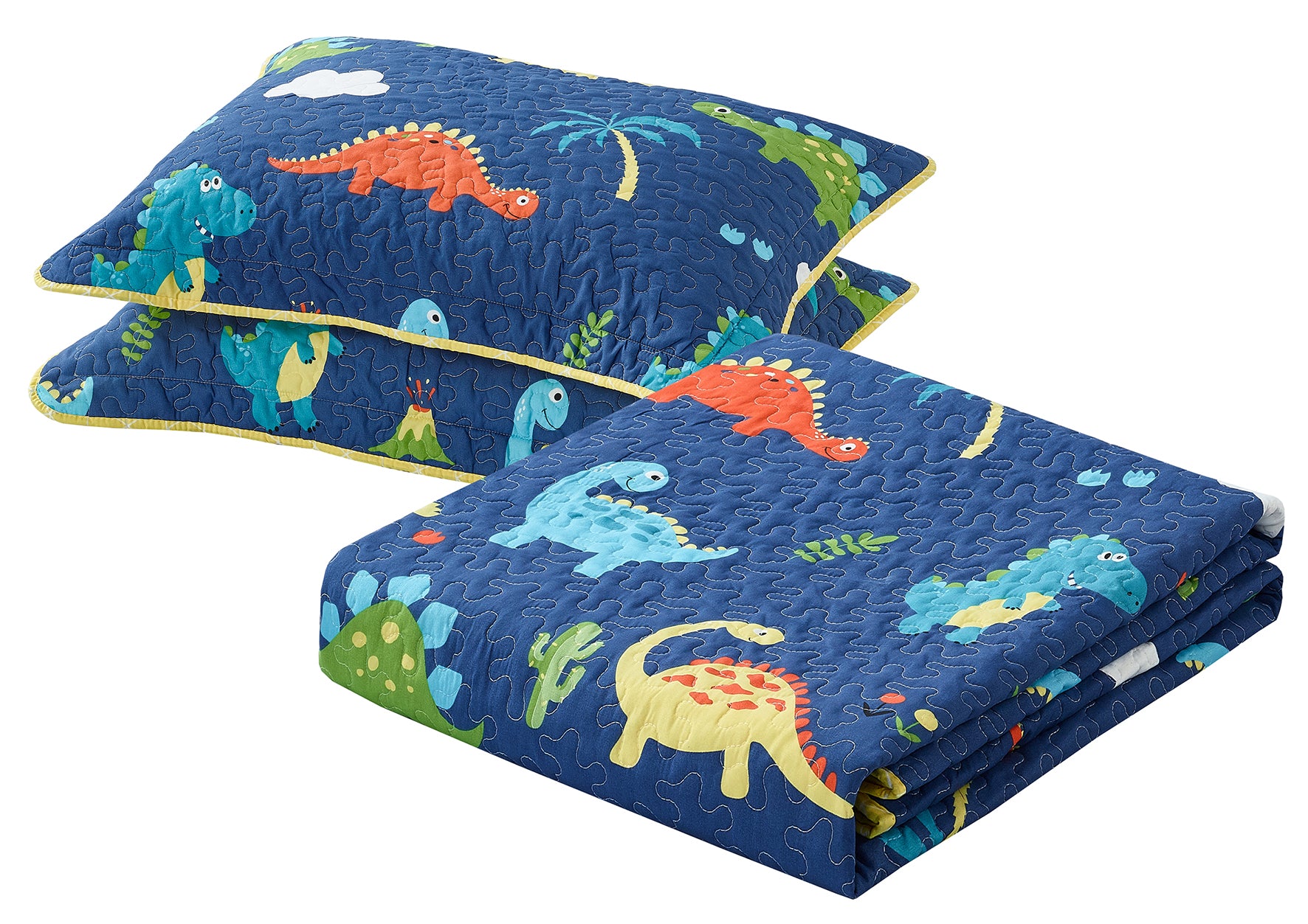 All American Collection Navy-Yellow Dinosaur Printed Bedspread Set